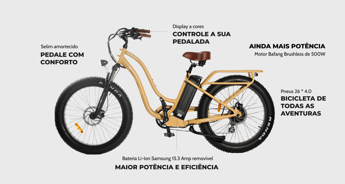 Riding a fat bike feels like floating, with pedalling confort, tires that guarantee traction and stability with reduced impacts.